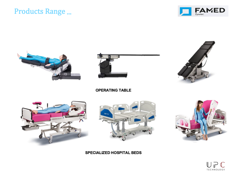 Famed Żywiec is a leading European manufacturer of high quality medical equipment. In over 75 years of our history, we haves upplied medical facilities with thousands of top-quality operating tables, hospital beds, treatment chairs and other equipment. Famed products are used by doctors in Poland and more than 110 countries around the world, in the most demanding markets and in the most difficult conditions. We have built the strength of our brand based on the experience of Żywiec businesses and craftsmen who have specialized in this field since the 19th century. A key competitive advantage of Famed Żywiec in the dynamically developing medical industry is our qualified staff. Thanks to the commitment of a team of high-class specialists, supported by modern production equipment and unique technological solutions developed over the years, our products have an exceptional reputation, contributing to the improvement of the quality of medical care in Poland and in the world.F..
