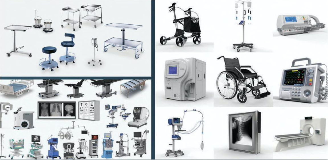 Medical Centers Designs, Consultation, Laboratory Designs, Medical Equipment, ICU - NICU - Recovery – Emergency and Casualty, Gas Piping Design, Operating Theatres, Dental equipment and furniture, Medical furniture, Waste Management, Liquid waste management, Nurse call system, Master clocks, and Others
